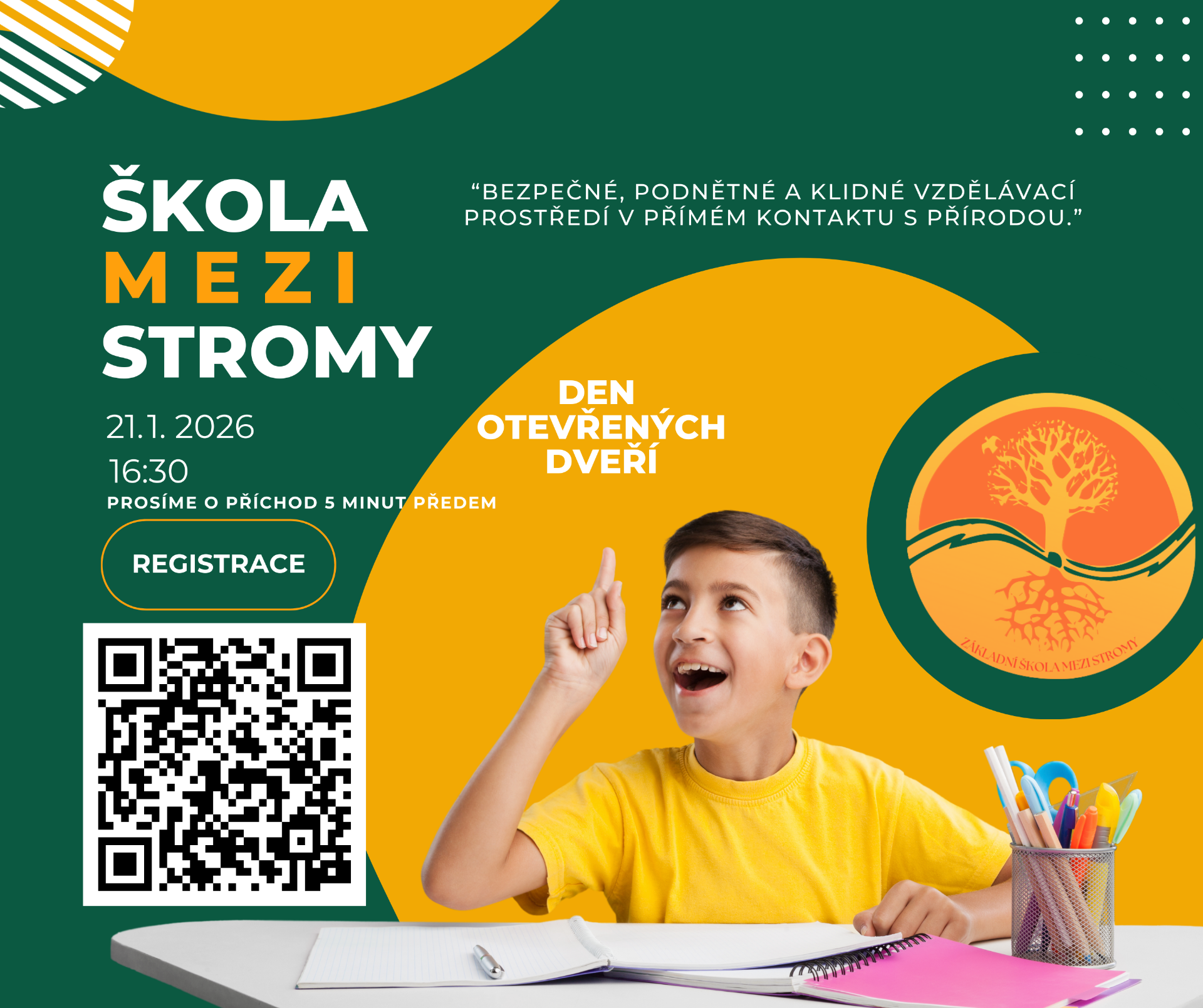 Škola je místem, kde se děti cítí v bezpečí, učí se přirozeně a v souvislostech – aniž by ztratily kontakt s přírodou, samy se sebou či s vámi, rodiči. Je to prostor, kde mohou tvořit, objevovat, budovat vztahy s vrstevníky i dospělými, běhat, radovat se z učení i ze života.